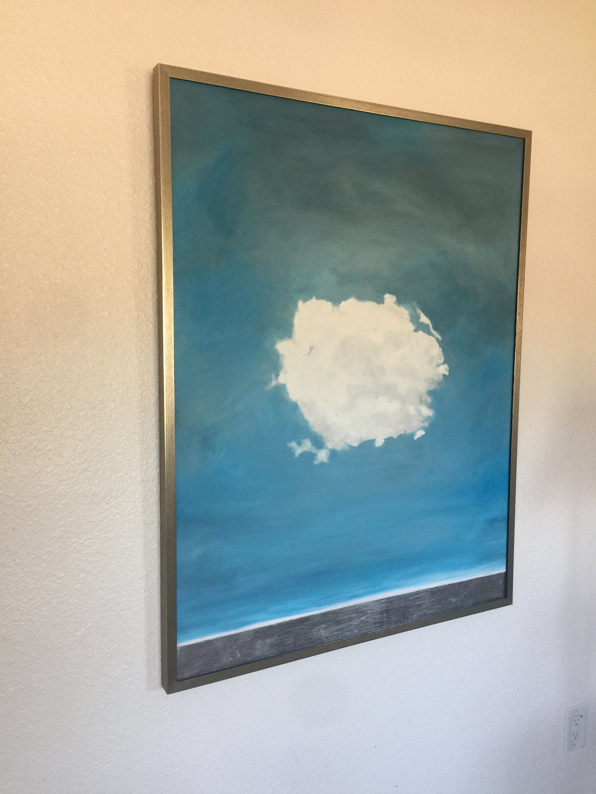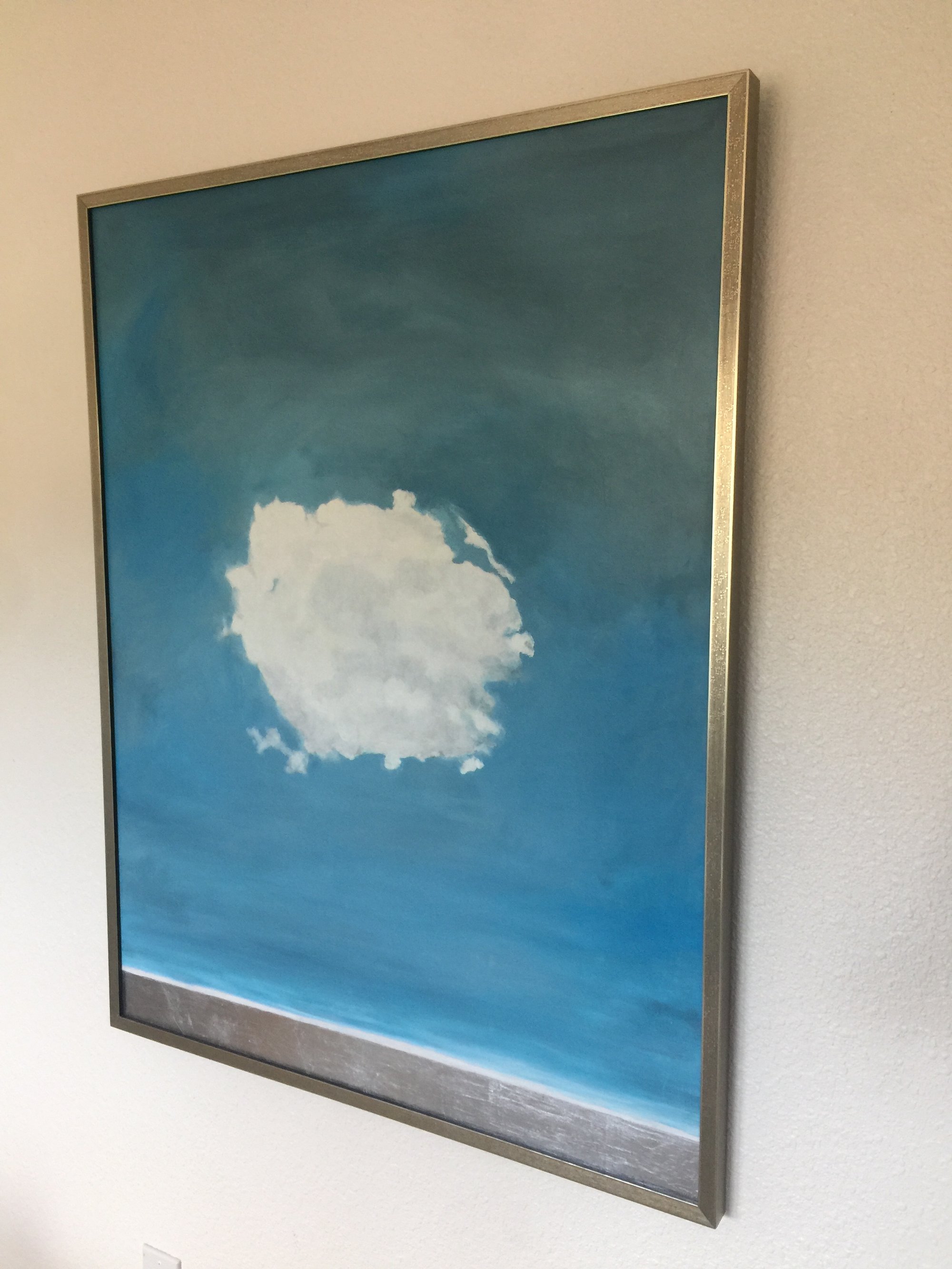 One big cloud of hope, over a horizon of silver sea. The intention of this piece is to bring thoughts of peace and hope to the viewer.